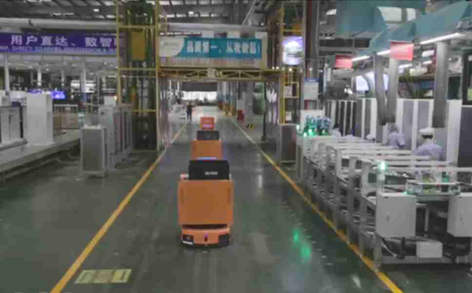 为车载冰箱物流配送打造的智能解决方案,,包含产中物流通过潜伏举升AMR搬运至线边,,,,产后成品物流智能仓储,,,流程包含产中物流智能齐套入库,,线边安灯叫料AMR智能配送至线边,,,,成品入库、、出库,,,通过无人堆高车机器人,,智能仓储管理替代人工作业管理,,,实现更高存储、、更高效率、、、、更具柔性化的解决方案。。。。